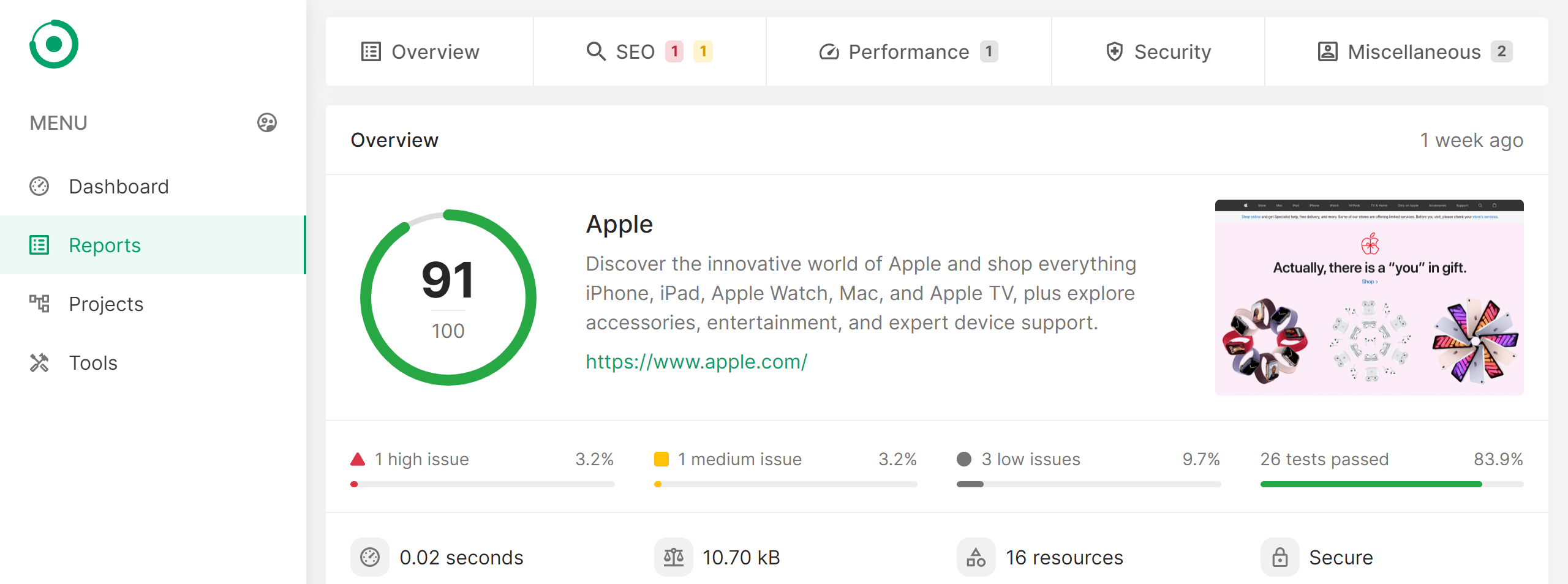 Analyze the reports and take action on issues that matter. We make this easier by highlighting each issue with a special symbol and color.